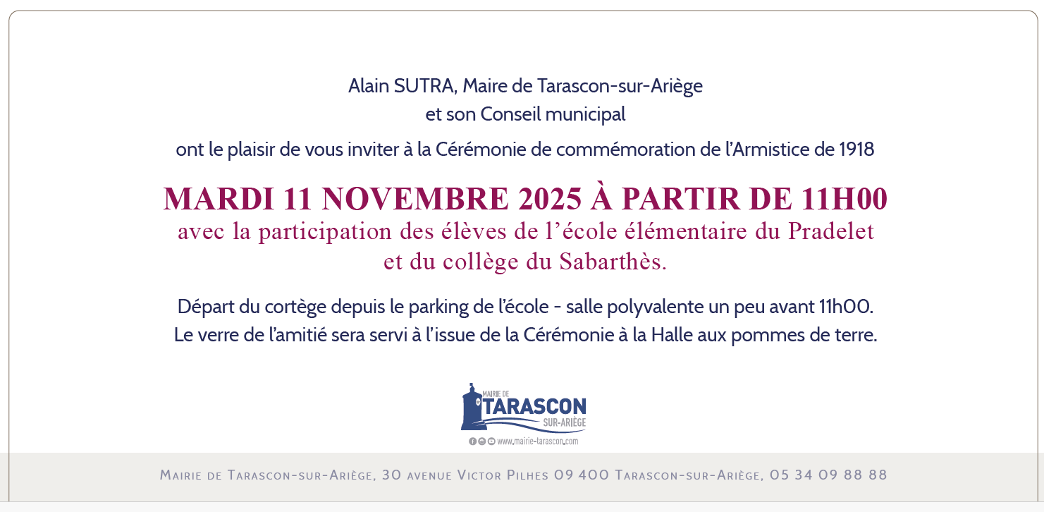 Mardi 11 novembre 2025 : Dans le cadre du parcours citoyen, et afin de sensibiliser les élèves à l’importance des commémorations, sous l’égide des professeurs d’histoire-géographie EMC, des d’élèves de 3e de Tarascon-sur-Ariège participeront à la cérémonie du 11 novembre à Tarascon-sur Ariège. L'accent sera mis sur les aviateurs de la première guerre, Monsieur Ramos, collectionneur sera présent avec des objets de la guerre. Les élèves seront sur le stand, l'un d'entre eux sera maître de cérémonie et d'autres liront des correspondances de poilus.